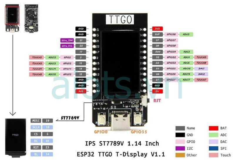 - Màn hình: IPS ST7789V 1.14 Inch.